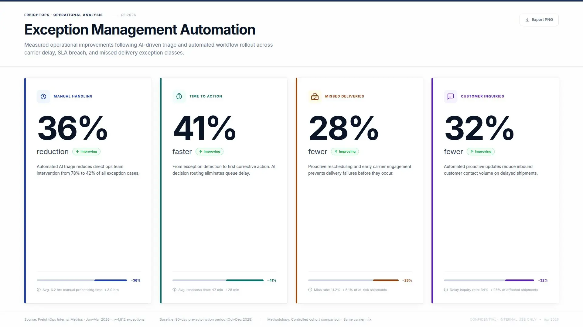 After launch, we tracked detection quality, time-to-action, exception aging, and manual handling rates to improve performance over time.