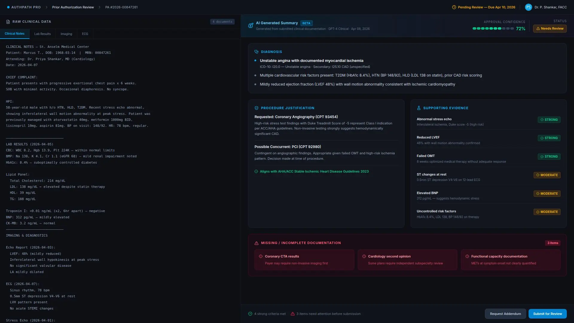 - It pulled supporting clinical data from notes, results, and structured fields
